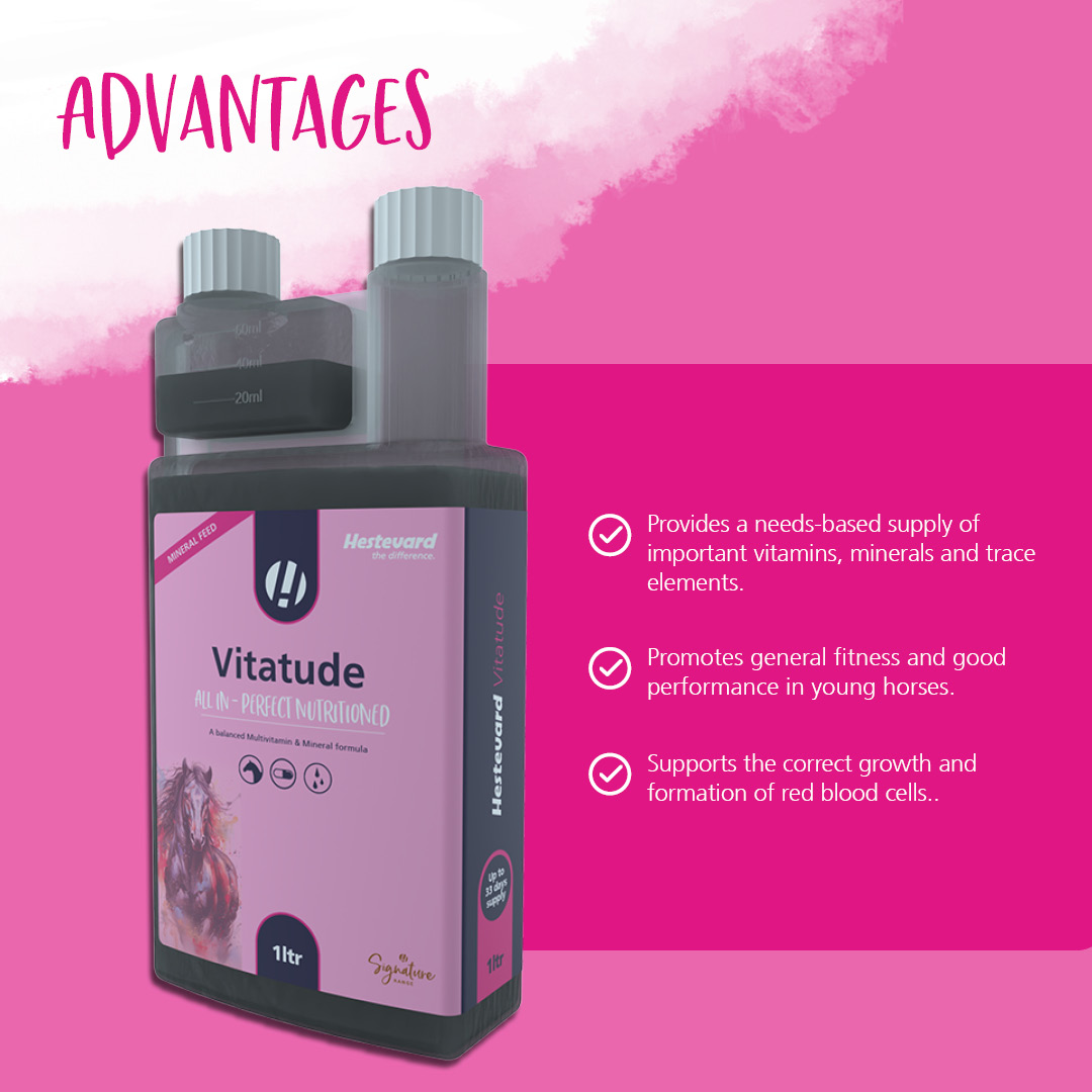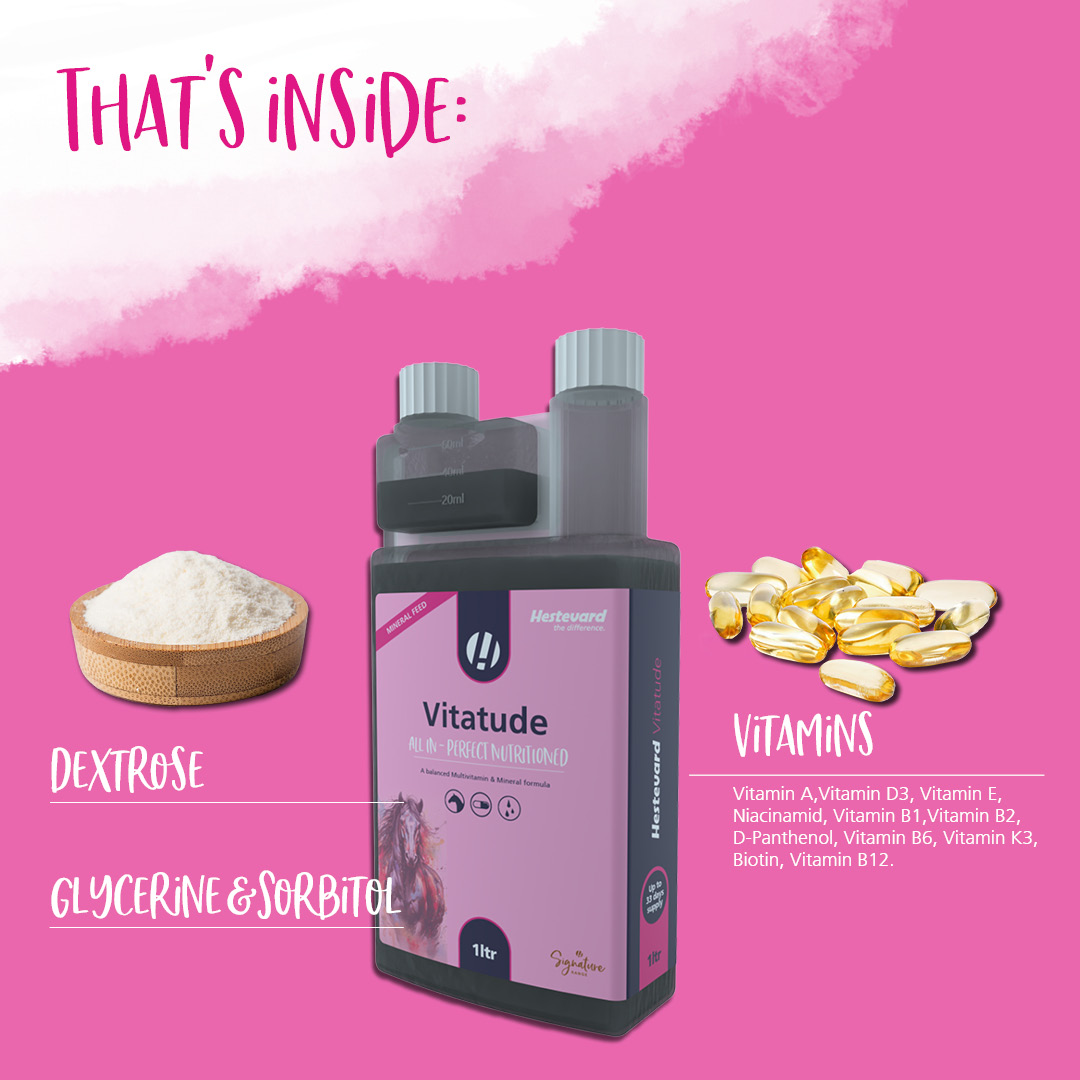 | Monivitamiini -ja mineraali täydennysrehu. Tukee hevosta karvanvaihdon aikaan, kovassa treenissä ja dietin aikana. Tukee immuunijärjestelmää ja aineenvaihduntaa. Vitatude tukee myös normaalia kasvua ja suorituskykyä nuorilla hevosilla ja poneilla.