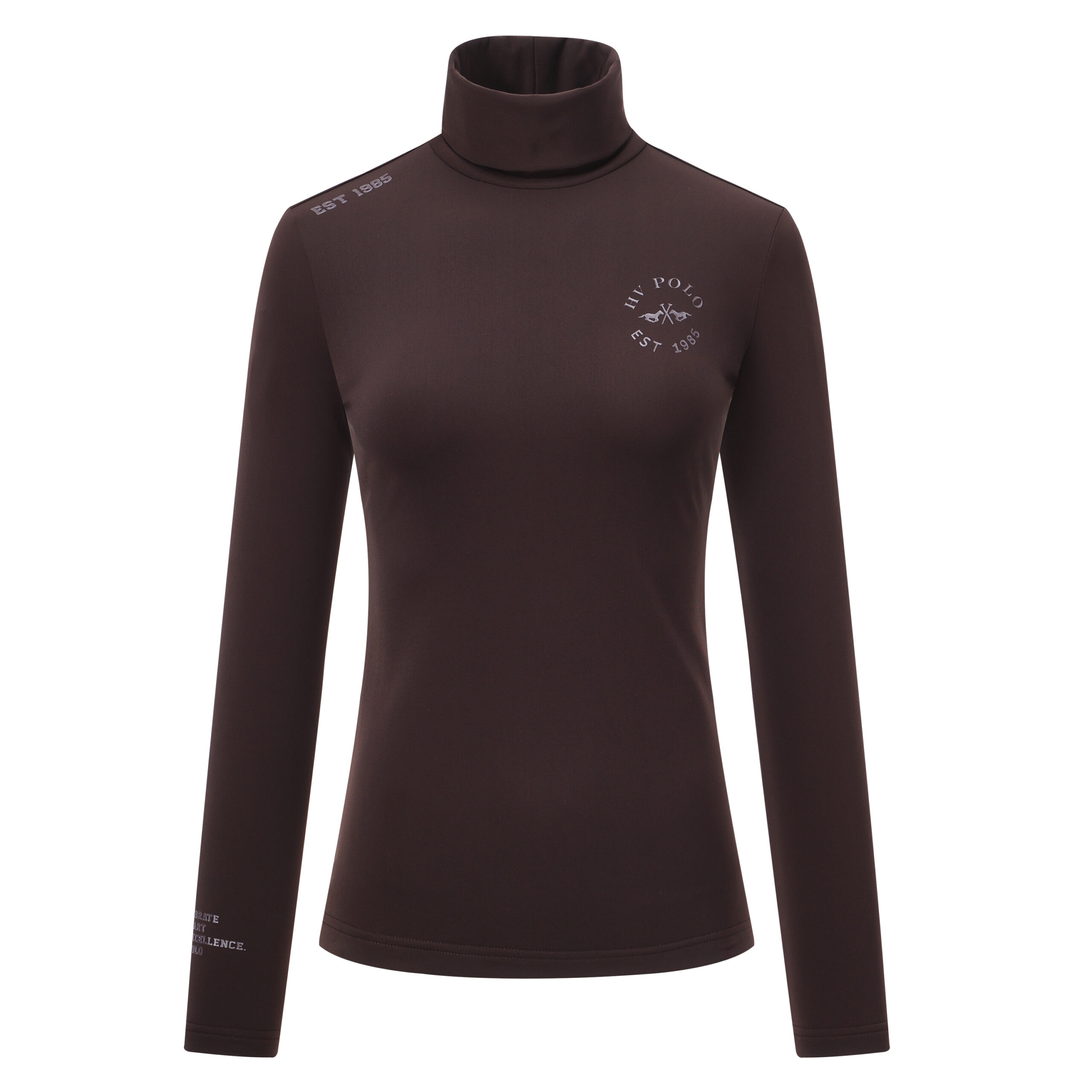 Naisten ylellinen paita silkkimäisestä stretch-jerseystä, metallisella HV Polo -kuvioinnilla ja korkealla kauluksella. Tämä paita yhdistää pehmeän ja joustavan materiaalin ylelliseen tyyliin. Metallinen HV Polo -taideteema tuo näyttävyyttä, ja korkea kaulus lisää sekä lämpöä että eleganssia – täydellinen valinta ratsastukseen tai vapaa-aikaan. Väri: Ruskea.